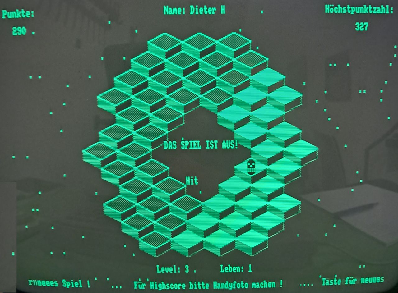Zusätzlich hatten wir mit dem Spiel "Q-Bert" einen Wettbewerb ausgerufen, bei dem ich natürlich auch mitmischen wollte.