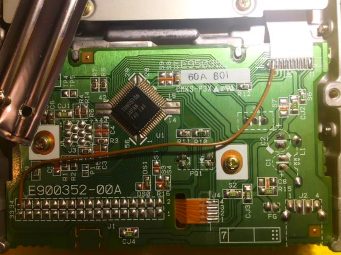 Bei einem TEAC FD-235HF 8xxx kommt leider kein READY Signal aus dem Controller Chip. Hier kann jedoch eine Brücke zwischen PIN-34 und Pin 1 des Flachbandkabels zu den Schreib/Leseköpfen des Laufwerks weiterhelfen. Der Hinweis zu dem PIN 1 am Flachbandkabel kam aus dem Umbau eines NEC FD1231H Laufwerks mit dem gleichen Controller Chip (TRN9510A).