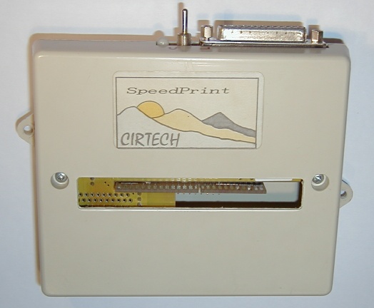 Einen kleinen Nachteil gibt es aber auch bei der SpeedPrint - leider verfügt diese Schnittstelle über keinen seriellen Ausgang, sodaß keine Maus (wohl gemerkt an der Schnittstelle) angeschlossen werden kann; dafür gibt es aber die KeyMouse, die zwischen Tastatur und JOYCE gesteckt wird. Die Zusammenarbeit zwischen KeyMouse und SpeedPrint ist problemlos. Die SpeedPrint kann an jedem JOYCE betrieben werden, auch am PCW 9512, trotz dessen interner Schnittstelle. Die SpeedPrint gibt es in sechs verschiedenen Größen von 128kB bis 2.048kB Druckerpuffer. Ich empfehle einen Mindest-Pfuffer von 512kB, denn die Copy-Funktion kann nur eingesetzt werden, wenn das komplette Dokument Platz in den Speicherchips der SpeedPrint findet. Jede SpeedPrint Variante kann auf 2.048kB nachgerüstet werden, doch die Kosten sprechen gegen eine solche Nachrüstung, es empfiehlt sich - besonders bei Benutzung von den MicroDesign - gleich auf eine hohe Bestückung zurückzugreifen. Der Preis für eine 512kB SpeedPrint liegt bei ca. 190,-- DM und entspricht dem Preis der herkömmlichen CPS-Schnittstelle. Die SpeedPrint-Schnittstelle wird auf den 50poligen Expansionsport (Stecker auf der Rückseite des JOYCE) gesteckt; für die SpeedPrint wird wie für alle englischen Produkte ein entsprechender Adapter (siehe Mini-Lexikon) benötigt. Die Preise für die SpeedPrint liegen bei: