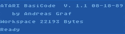 Auf den 16-bit-Modellen von ATARI gab es BasiCode früher als auf den 8-bit-Vorgängern, allerdings nur in Version 2, also ohne Dateiarbeit, Pixelgrafik und Sound. Geschrieben hat diesen Bascoder Thomas Mäurer aus Oberhausen 1988 für Omikron-Basic. Andreas Graf nahm sich nun vor, für die 8-bit-Modelle nachzuziehen und das gleich für Version 3. Dort gab es diverse Basics, manche wären mehr, manche weniger geeignet gewesen. Schließlich entschied er sich dafür, wie es auch schon beim AC1 (einem DDR-Selbstbaucomputer) gehandhabt worden war, für BasiCode ein eigenes Basic (für die Modelle 800XL/XE, 600XL und 130XE) zu schreiben, das auch "einfach so" benutzt werden kann, also im Direktmodus oder für das Schreiben eigener Programme mit einem allerdings sparsameren Befehlsvorrat, wie man der Abbildung entnehmen kann. Leider bedeutet das auch, dass für eine Erweiterung auf Version 3C (Farbfähigkeit) zunächst das Basic erweitert werden muss, denn es gibt keine Befehle wie COLOR, INK oder PEN. Möglicherweise reichen dafür aber auch PEEKs und POKEs, das wäre zu ergründen. Im vorliegenden Paket sind vier Diskettenabbilder enthalten. BASICOD0.ATR entspricht der Diskette PD-305 beim ABBUC (Atari Bit Byters User Club e.V.). Alle vier Diskettenabbilder sind bootfähig dank des XDOS 2.43 von Stefan Dorndorf, das als Public Domain freigegeben ist.