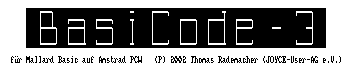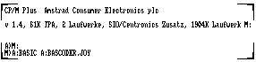 - auf meinem virtuellen JOYCE tippe ich A:BASIC A:BASCODER.JOY und werde auf dem Startbildschirm