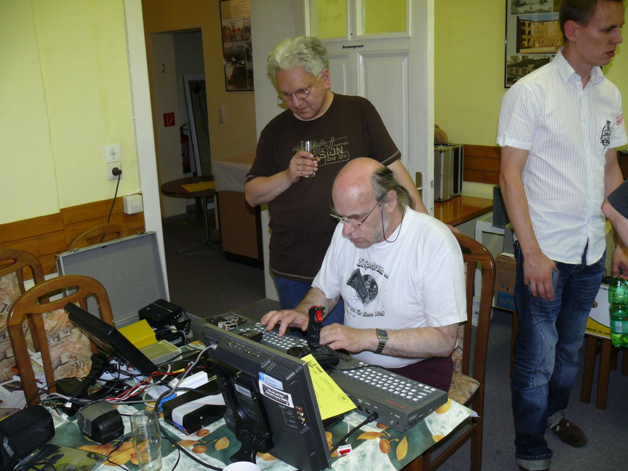 Zu Gast auf dem Spectrum-Treffen in den Räumen des Wittenberger Kulturbundes. Die Freunde der 8-Bit-Homecomputer, allesamt begeisterte Schrauber, Bastler und Programmierer, haben die Gelegenheit genutzt, ihre eigenen Neuentwicklungen vorzustellen und sich untereinander auszutauschen.