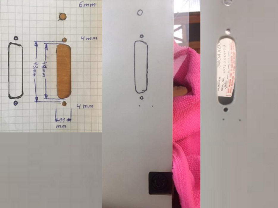 Mit einem Dremel-Werkzeug die Löcher und den Schlitz für den DB25 Stecker gebastelt. |