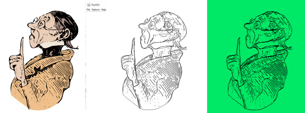 Anleitung TinySVGZur Ausführung von TinySVG muss eine Java-Runtime ab Version 8 auf dem PC installiert sein. Das Programm besteht aus einer JAR-Datei, die man einfach per Doppelklick starten kann. Zunächst sollte man die gewünschte Sprache einstellen, falls das Menü nicht bereits in der korrekten Sprache erscheint: Optionen > Deutsch oder Optionen > Englisch bzw. Options > German oder Options > English. Im folgenden werden die deutschen Menüs verwendet.