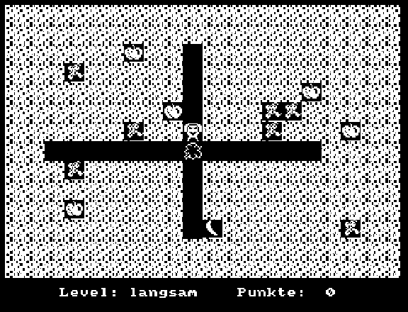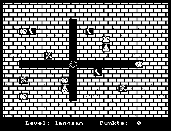 Fruity FrankFruity Frank ist ein Aktions-Video-Spiel, das ursprünglich für den CPC geschrieben wurde. Mir lag dieses Spiel unter dem Namen FRUIT ebenfalls als ein unter Turbo-Pascal kompiliertes .COM-File vor. Nach der Disassemblierung und der manuellen Dekompilation findet sich dieses Spiel hier als Turbo-Pascal-Quelle: Als weiterer Versuch einer De-Kompilation habe ich das Spiel Fruity Frank verwendet. Es wurde als Bonusprogramm auf der Databox 4/1989 (PC AMSTRAD INTERNATIONAL) veröffentlicht. Auch dieses Spiel war in TURBO PASCAL 3.x als .COM-Datei kompiliert. Für die De-Kompilation gilt, was unter QUATRIS beschrieben wurde. Hier dann das Ergebnis - weil der Compiler mit einem Speicherüberlauf reagiert, zerlegt in Einzelteile: FR.PAS, FR1.INC und FR2.INC. Hinweis: Der Kern für die Figuren sind zwei Routinen, die im Common Memory des JOYCE liegen, weshalb dieses Programm ohne Modifikation nicht unter allen CP/M-Maschinen lauffähig ist. FR_Matrix liegt in $F300 und wird von der Prozedur Setze_Matrix benutzt, die über Parameter das neue Zeichen einstellt. Dies betrifft die Zeichen im Bereich $a0..$e3, also Spezialzeichen außerhalb des druckbaren ASCII-Bereiches. Die Definition der Zeichen erfolgt in der Prozedur Fruit_Init. FR_Msg liegt in $F000 und wird von der Prozedur Video_String benutzt. Hier werden an einer bestimmten Stelle auf dem Bildschirm Zeichen mit Attributen dargestellt. Die Routine basiert auf einem Assembler-Programm, das im Artikel Superscript in der PC AMSTRAD INTERNATIONAL 6/87 vorgestellt wurde. Die Ausgabe der Figuren erfolgt jeweils über zwei oder vier Zeichen. Ein Tipp für die, die selber kompilieren wollen: Es muss eine .COM-Datei erzeugt werden. Wegen der Adresse von FR_Msg ($F000) muss die Endadresse auf maximal $EFFF eingestellt werden. Zum Einstimmen hier zwei mögliche Spielfelder:
