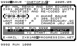 Jedes enthält eine Zeile 9990, die den SAVE-Befehl beinhaltet und auf dem ohnehin beim Laden wieder