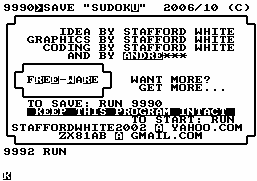 Fertigstellung von " Sudoku Master" beschäftigt und auch bei ANDRE***s ZX81-Programmen ist im Oktober 2006 Sudoku aufgetaucht.