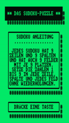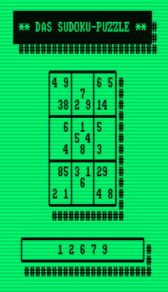 Möchte man das Knobeln unterbrechen, drückt man "S" und das Programm wird als "SUDOKUxx.BAS" abgespeichert.