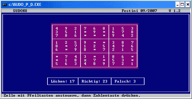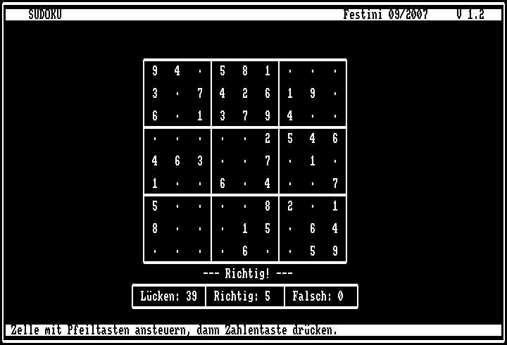 Zur Bedienung: Mit den Pfeiltasten die Zellen mit Punkt ansteuern, dann die entsprechende Zahl eintippen.